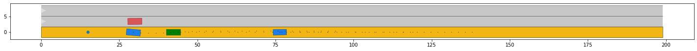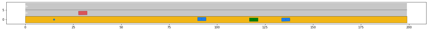 # plot the scenario and the ego vehicle for each time step